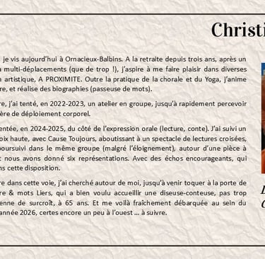 Découvrez nos comédiens talentueux, leurs parcours et leur passion pour la scène. Ensemble, nous créons des expériences inoubliables pour notre public.