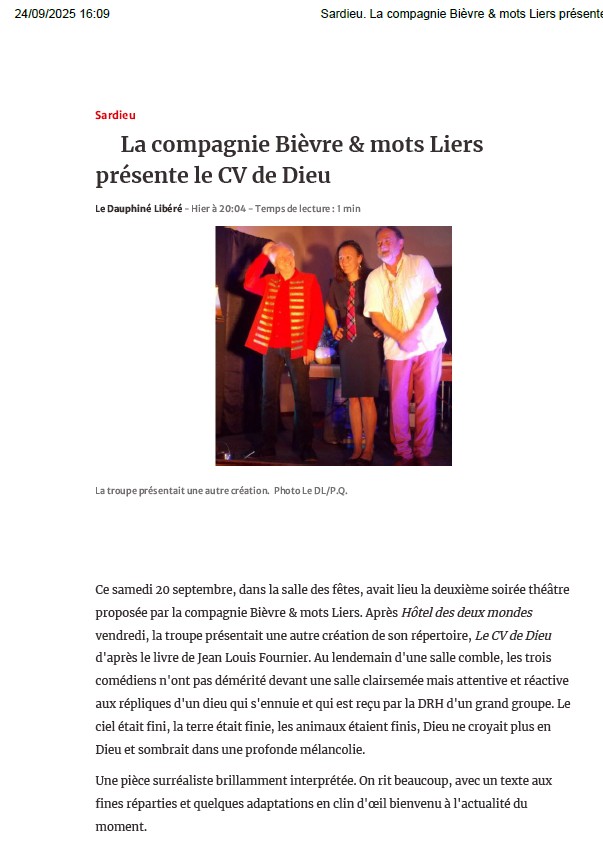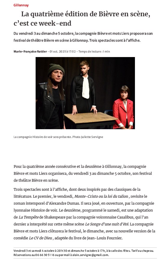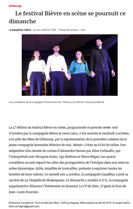 Festival de Théâtre "Bièvre en Scène" 2025 à Gillonnay