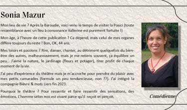 Nous sommes une troupe de comédiens passionnés, chacun avec un profil unique, prêts à vous divertir et à partager notre amour du théâtre.